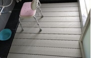 転倒を防止でき、安全に脱衣場~浴室への移動動作ができている。