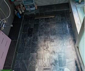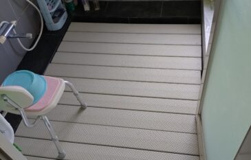 また、洗い場で段差があった部分を埋めることにより、洗い場面積が広くなり介助スペースを広くすることもできた。