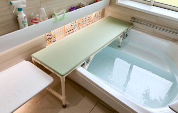 設置したバスボードに一旦座らせることができるので介助も楽になり、安心して入浴できるようになった。
