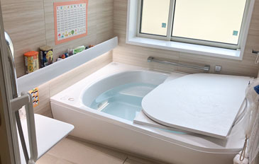 肩までお湯に浸からせてあげたかったため、今までは2人介助で入浴を行っていた。