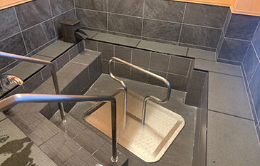 誰もが利用できる温泉旅館を目指し、障がいのある方やご高齢の方でも安心して入浴できるよう、介護に配慮した浴室に福祉用具を整備したい。