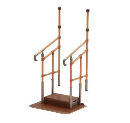 たててすりがあることで段差を上がりきるまでの動作、降り始める時の動作が安定した姿勢で行えます。