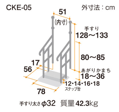 あがりかまち用 たちあっぷ たててすり両手すり (CKE-05、05-1)| 品名 | あがりかまち用 たちあっぷ たててすり両手すり (CKE-05、05-1) |