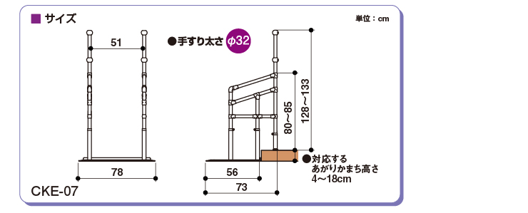 あがりかまち用 たちあっぷ たててすり両手すり (CKE-07)| 品名 | あがりかまち用 たちあっぷ たててすり両手すり (CKE-07) |